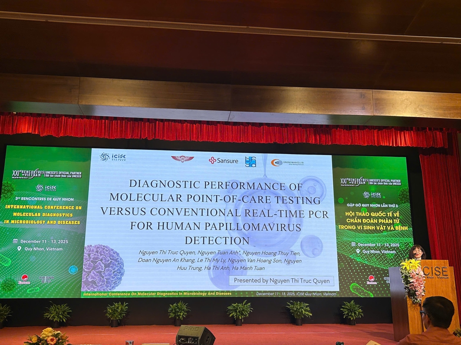 Tại hội nghị, nhóm nghiên cứu đến từ Trung tâm Đào tạo và Chẩn đoán Y sinh học phân tử, Bệnh viện Đại học Y Dược TP.Hồ Chí Minh – Cơ sở 2 đã giới thiệu báo cáo khoa học mang tên “Diagnostic Performance of Molecular Point-of-Care Testing versus Conventional Real-Time PCR for Human Papillomavirus Detection”. Công trình được triển khai với sự tham gia của nhiều cơ sở y tế và đào tạo, thể hiện tinh thần hợp tác liên ngành trong lĩnh vực chẩn đoán y sinh học tại Việt Nam.